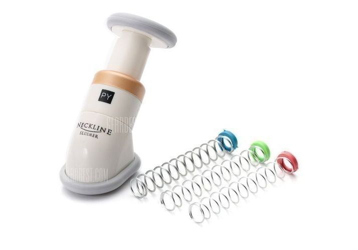 L'encolure SlimmerTM utilise progressif, trois résistance de bobine de niveau pour accorder, serrer et soulever des muscles de cou flasques, sous-jacents dans juste deux minutes par jour.