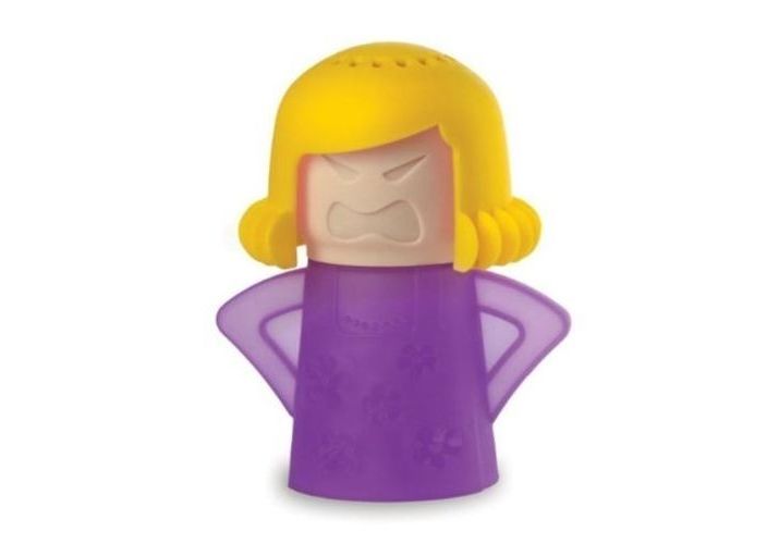 Angry Mama est une magicienne… Remplissez-la de vinaigre blanc et d'eau. Mettez le micro-ondes en route pendant 5 minutes. La vapeur qui se dégage de ses cheveux fait fondre toutes les graisses et les salissures. Passez ensuite un chiffon dans votre four : il est comme neuf ! En matière plastique.