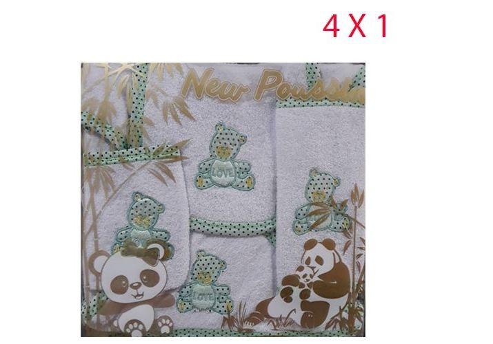 New Poussin : Peignoir + Serviette + Bonnet + Bavoir Pour Bébé 4 X 1- Vert