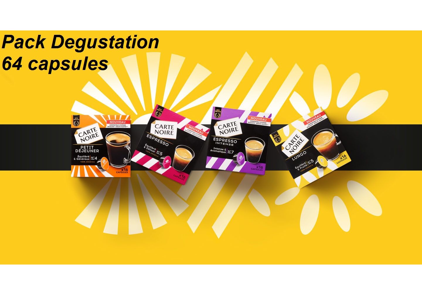 Pack Dégustation 64 capsules Carte Noire compatible Dolce Gusto