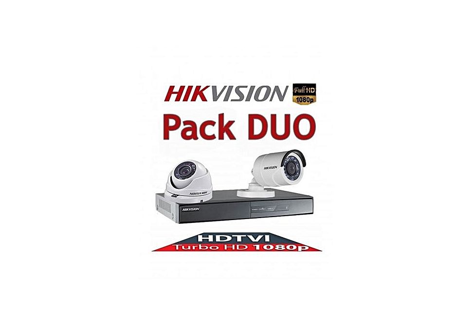 Pack Duo pour Système de Surveillance 1DVR 4voies Turbo HD + 1 Caméra Dôme pour Intérieur + 1 Caméra Bullet pour Extérieur (HDTVI 2,8mm avec Résolution : 2Mégapixel/1080p)