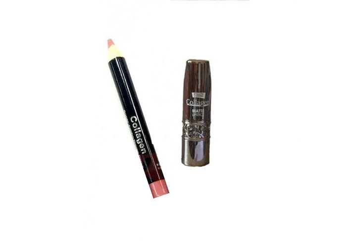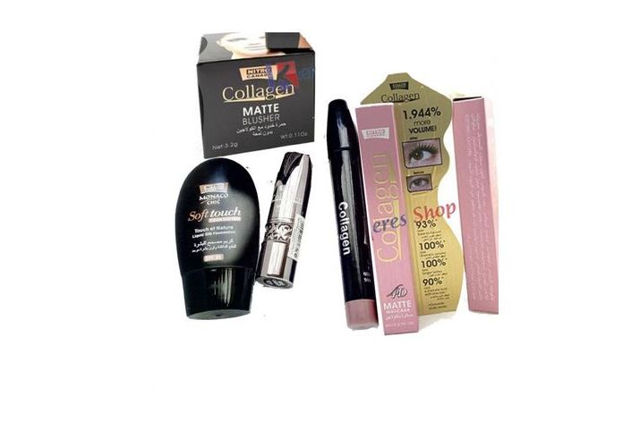 Blush Collagen matt , miroir éponge intégré système ressort . Rouge à lèvres collagen, MAscara extra volume noir collagen, crayon lip Collagen