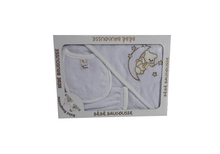 Un peignoir 100% coton avec capuche qui enveloppe bébé de douceur en sortant du bai./div>