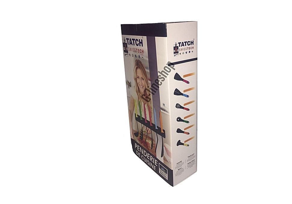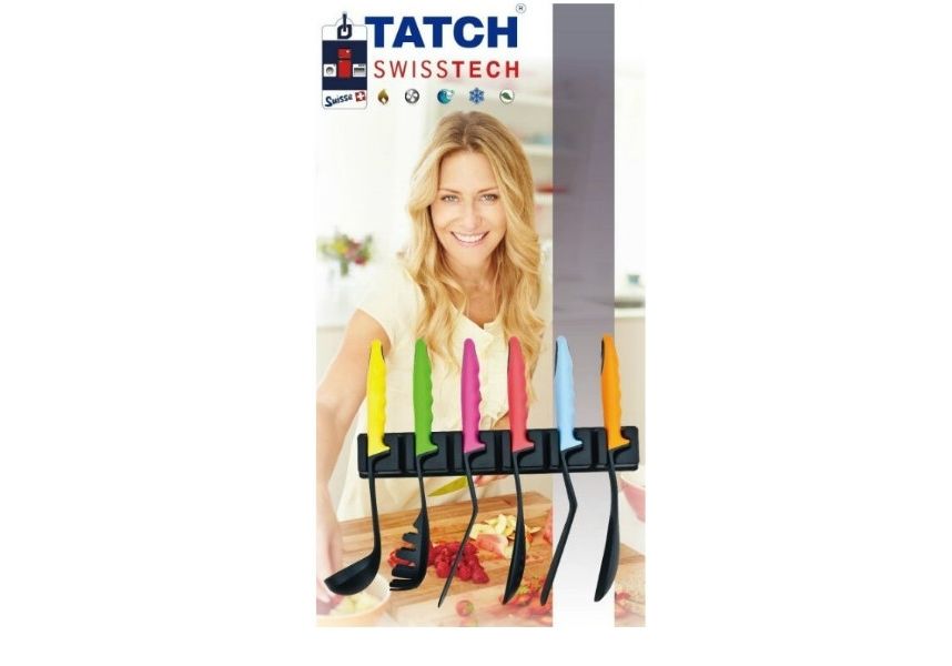 le box contient :Spatule, Spatule perforée, Cuillère à rainures, Cuillère à spaghetti, Cuillère à servir, Louche.