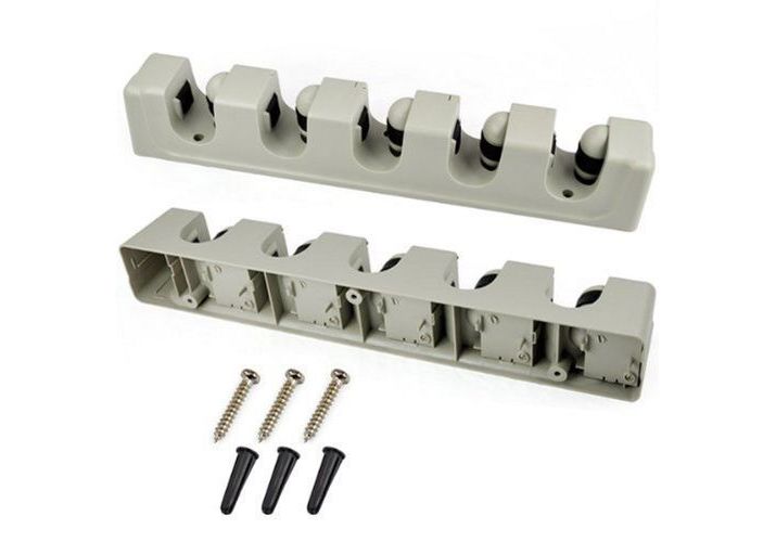 Porte Balais mural et autre outils à 5 Compartiments et 6 Crochets