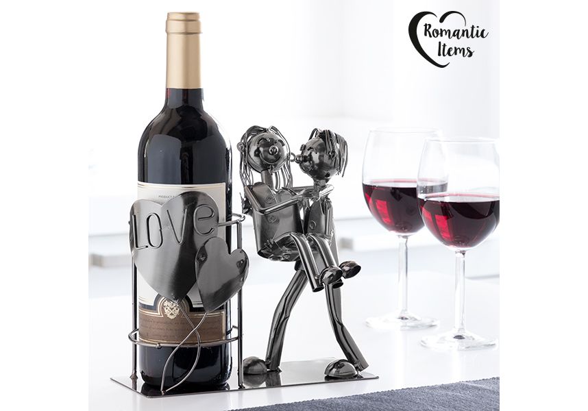 Donnez une touche romantique à vos accessoires pour le vin avec le pratique porte-bouteilles métallique Love Romantic Items ! Idéal pour offrir et pour servir le vin.