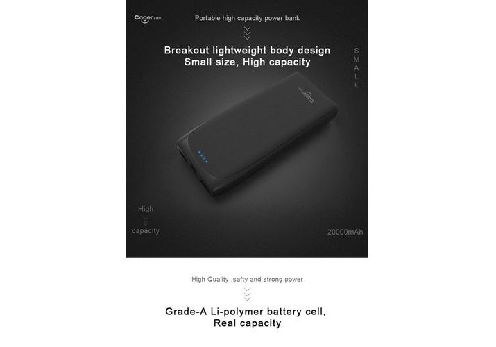 CAGER Power Bank 20000 Mah, batterie Nomade pour Smartphones et Tablettes.