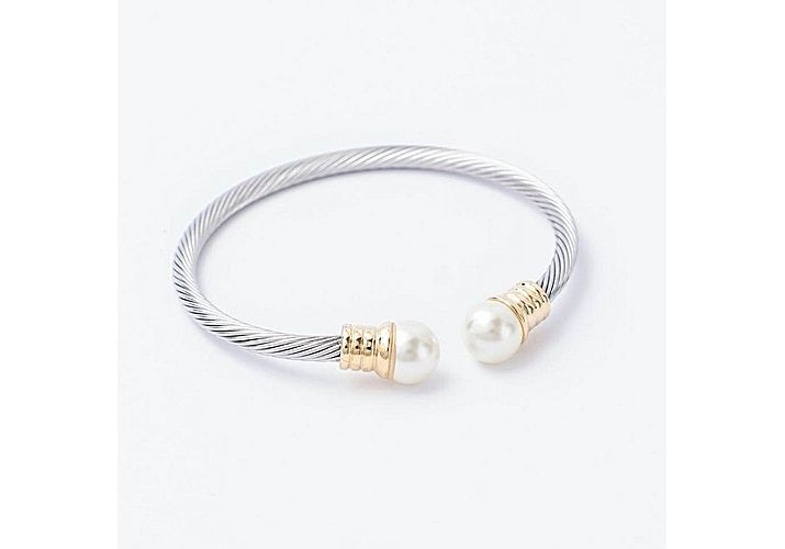 Rêve diamant Bracelet en Acier torsadé à perle Chic - Argenté & Doré + Boite Cadeau
