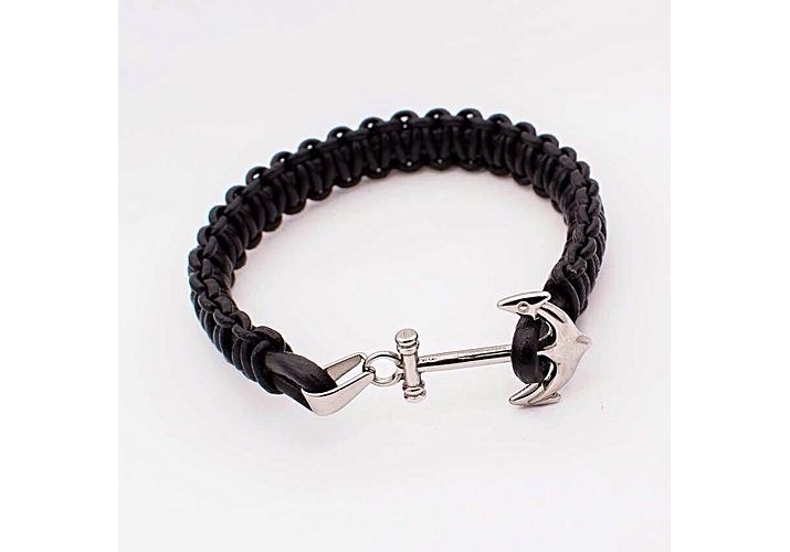 Bracelet Marine Tressé en cuir 100% Acier - Noir pour homme.