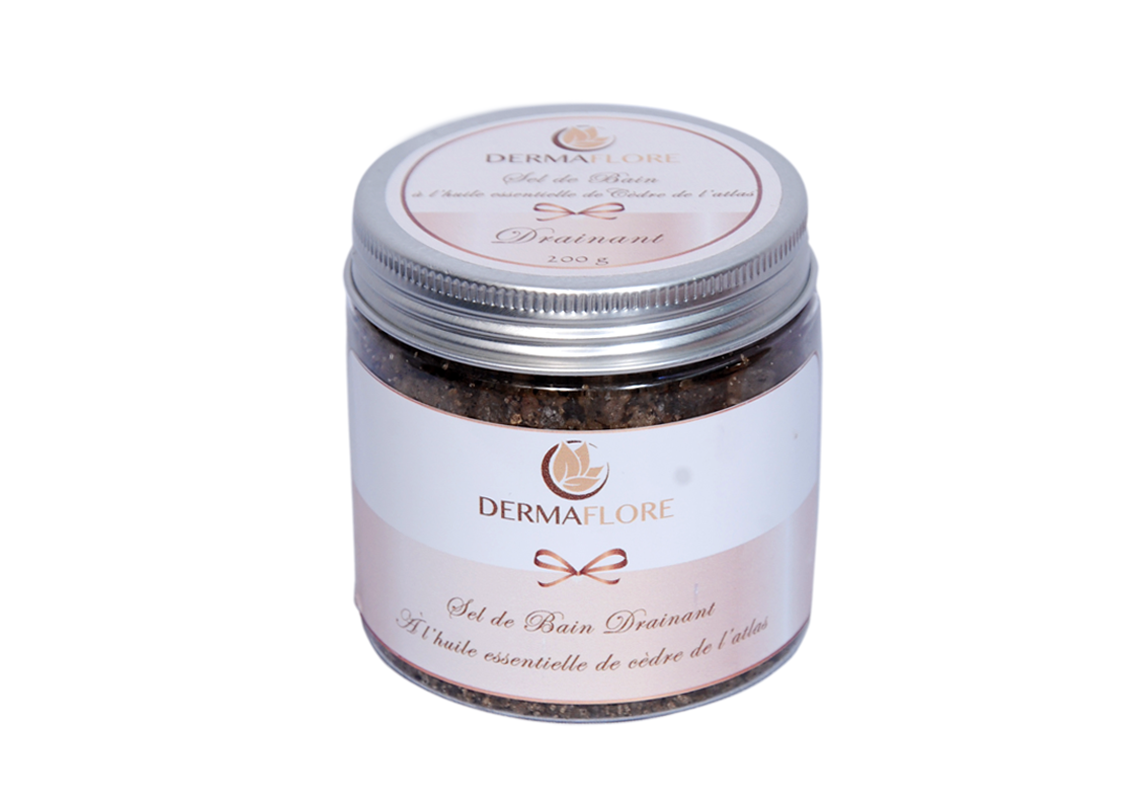 A l’huile essentielle de cèdre de l’atlasLe complexe naturel des sels de bain DERMAFLORE à base de sel marin, de plantes et d’huiles essentielles fait de votre bain un moment de détente unique.