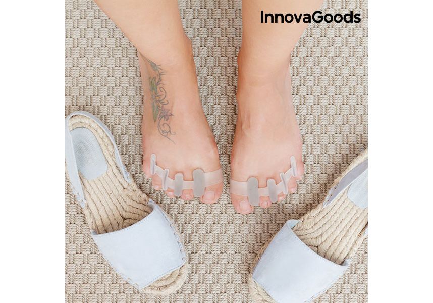 Vous avez besoin de soulager la douleur des pieds et de corrifer la posture de vos orteils ? Nous vous présentons les ppratiques séparateurs d'orteils en gel relaxants InnovaGoods Wellness Care (pack de 2) ! Ils s'adaptent parfaitement à la forme des pieds et sont rès efficaces pour redresser et aligner les orteils en évitant les frottements. De plus, ils aident à la prévention et au soulagement des douleurs occasionnées par les oignons, les orteils en marteau, la fasciite plantaire, les pieds diabétiquess, la mauvaise circulation, l'éperon calcanéen, les orteils en griffe, etc., en offrant une agréable sensation de détente et de bien-être grâce à sa texture en gel.