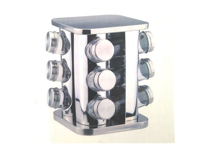 Support à Épices Rotatif à ses 12 pots en Acier Chrome - Ce support à épices rotatif est la solution au problème de rangement des épices.