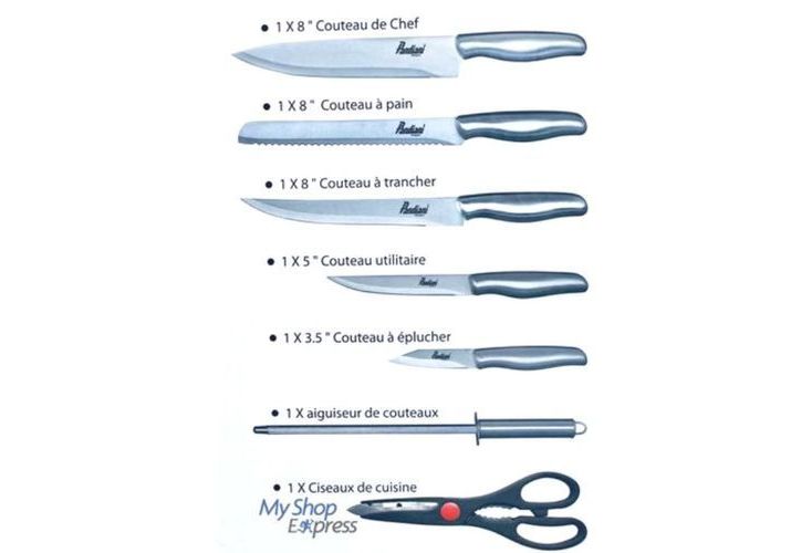 PANDIANI SET DE COUTEAUX INOX - 8 PIECES AVEC SUPPORT ROTATIF