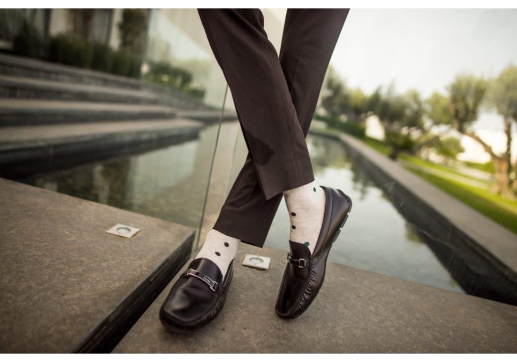 Ajoutez une touche chic à votre démarche avec les “small dot”. Vous pouvez parfaitement porter ces chaussettes avec un pantalon carotte ou les combiner avec un bloomer pour un style toujours plus décontracté et branché. Cette paire de chaussette est de couleur crème à petit pois vert bouteille, marron café et beige latté, elle est composé en partie de lin, il est donc très frais à porter et d’une grande capacité absorbante ce qui en fait la matière idéale pour un vêtement d’été.