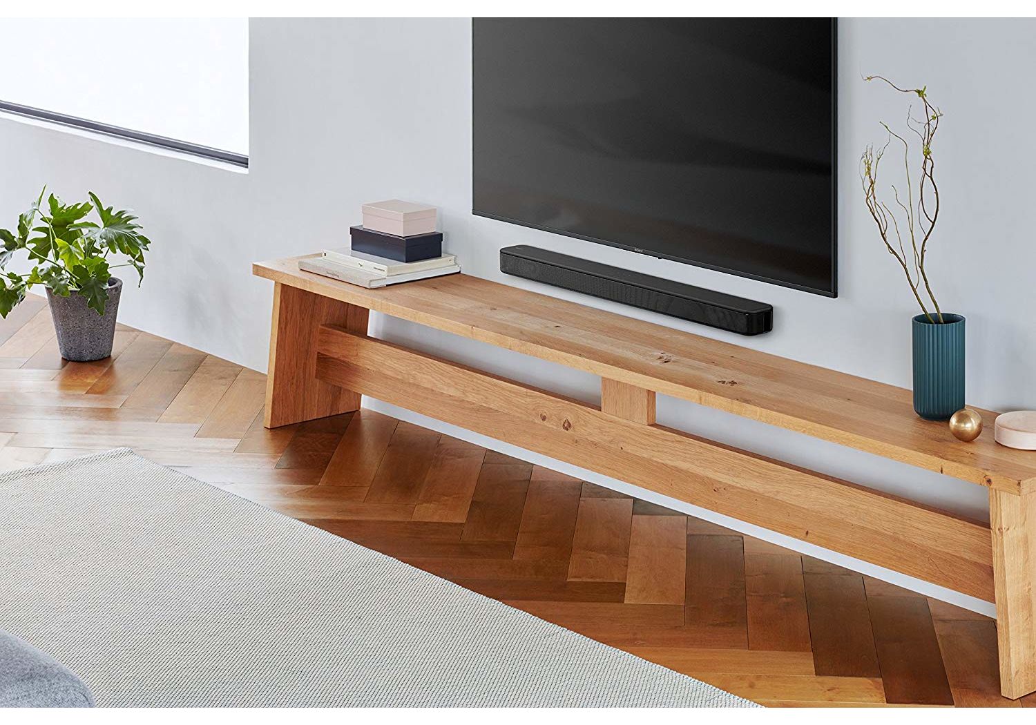Profitez de vos émissions de TV préférées avec une qualité audio supérieure grâce à une barre de son 2 canaux et une enceinte à technologie Bass Reflex. Le design ultra-fin de la HT-S100F s'intègre facilement dans votre intérieur.
