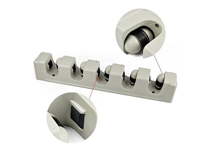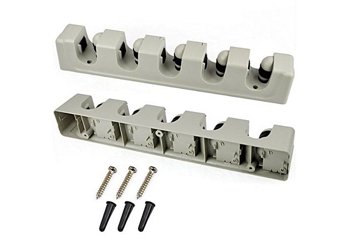 Organiseur mural de haute qualite avec 5 compartiments, coneu pour ranger en toute simplicite vos outils de maison et de jardin.Inserez simplement votre outil dans l'un des 5 emplacements et la fonction a bille de roulement s'ajustera a l'epaisseur du manche pour une bonne tenue.6 crochets a tirer pour les objets plus petits comme les sacs et pelles a poussiereInstallation simple (vis et prises murales fournies)Un accessoire incontournable pour ceux qui aiment que les choses soient bien rangees oe qui disposent d'un espace limite.
