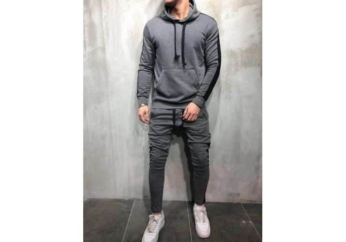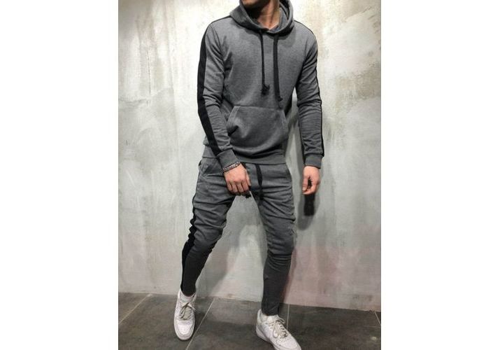 Survêtement Homme Rayure Noir Gris