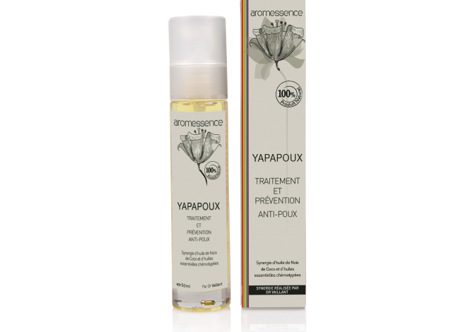 100% naturel, YAPAPOUX d’Aromessence élimine poux, larves et lentes en toute sécurité sans insecticide neurotoxique.