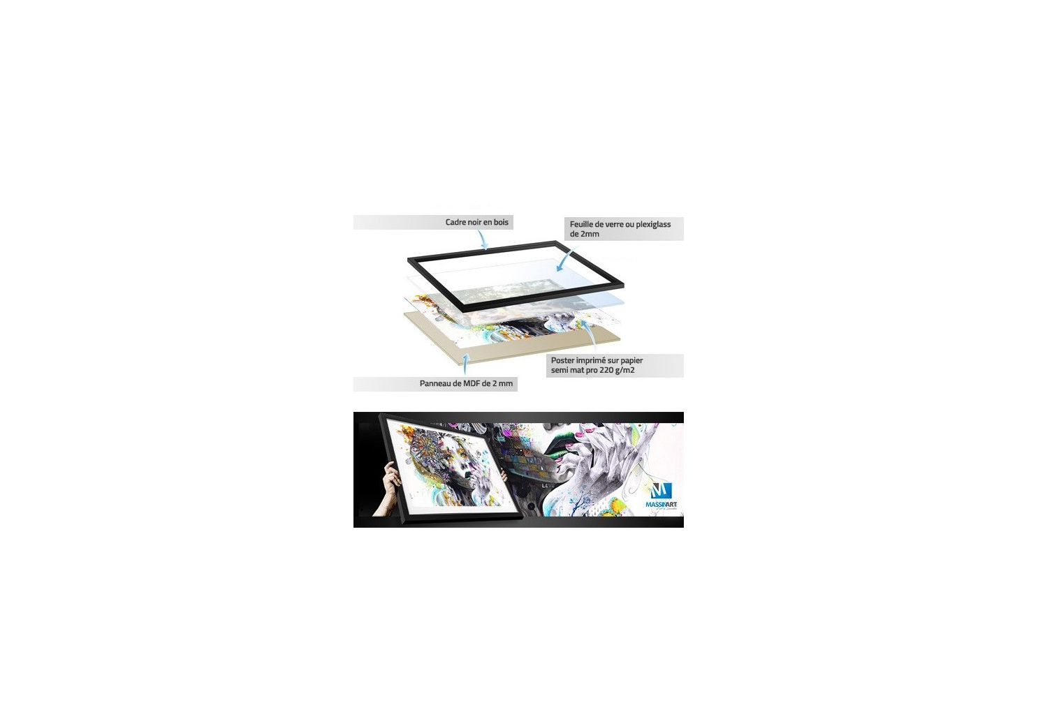 Encadrement : Cadre noir ou blanc mat en bois massif