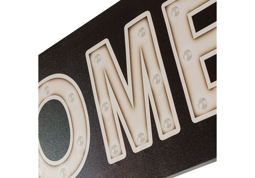 Décorez votre maison avec la toile de lin avec LED Home. Un cadre en bois avec 24 LED de lumière chaude fixe et avec deux crochets métalliques sur la partie arrière pour l'accrocher. Il dispose d'interrupteur marche/arrêt. Dimensions env. : 80 x 30 x 2,5 cm. Fonctionne avec des piles (2 x AA non incluses).