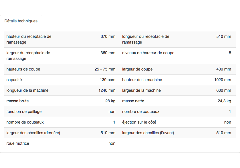 - Tondeuse thermique avec Largeur de tonte de 400 mm permettant un bon recouvrement