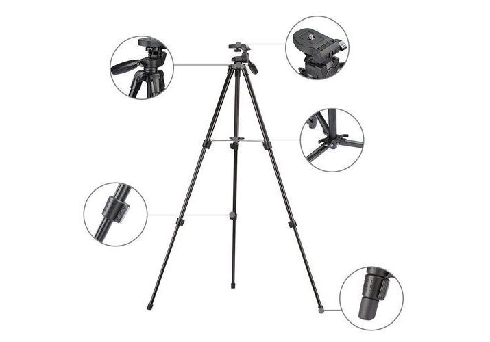 Yunteng avancée trépied léger costume tout-noir ton, digne rigoureux, en plastique et en métal matériaux en combinaison, en trois dimensions tête peut tourner 360 degrés, 90 degrés vertical tir, exquis, compact structure globale, avec un instrument horizontal, facile à l'équilibre mesure, quatre extensible trépied jambes conception le rend plus courte et plus portable; avec le sac trépied d'origine pour facile collection.