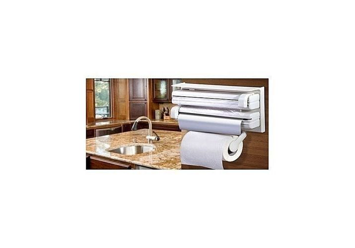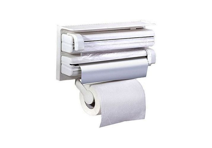 Détient et range tous les rouleaux de papier de cuisine en une seule place Pas besoin de ciseaux ou de couteaux pour l'emballage d'aliments.Les lames sont cachées derrière la couverture Utile dans vos cuisines En plastique ABS compact Partie supérieure peut être utilisée comme étagère pour déposer les bouteilles des épices.