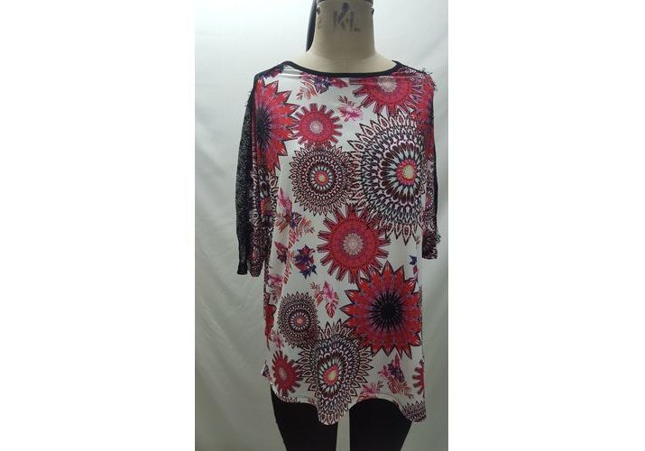 tunique imprime ECRU /FUSHIA