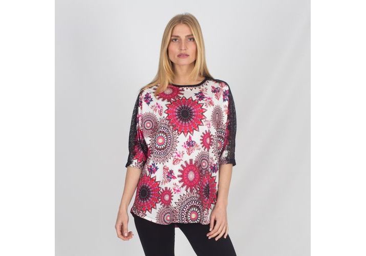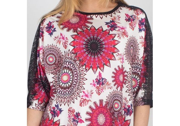 tunique imprime ECRU /FUSHIA