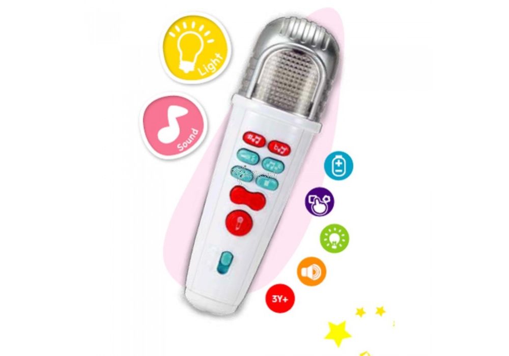Microphone avec lumières cendreuses et fonction de contrôle des touches. Effets sonores de réverbération et effet d'amplification.