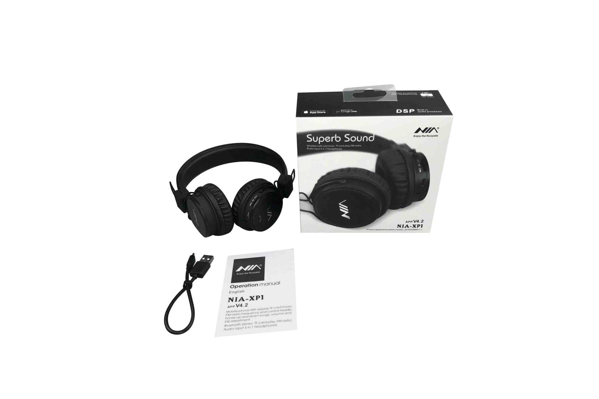 Avec l'application NIA Audio, profitez d'une expérience musicale encore plus personnalisée. DSP fournit des sons audio améliorés de manière significative à partir de votre appareil. Acoustique fine pour une clarté, une largeur et un équilibre. Prendre des appels mains libres avec un micro intégré. 5 en 1: Bluetooth + FM + lecteur Micro SD / TF + contrôle auxiliaire + APP. Bandeau pliable pour faciliter la prise. Conception ergonomique pour un confort optimal